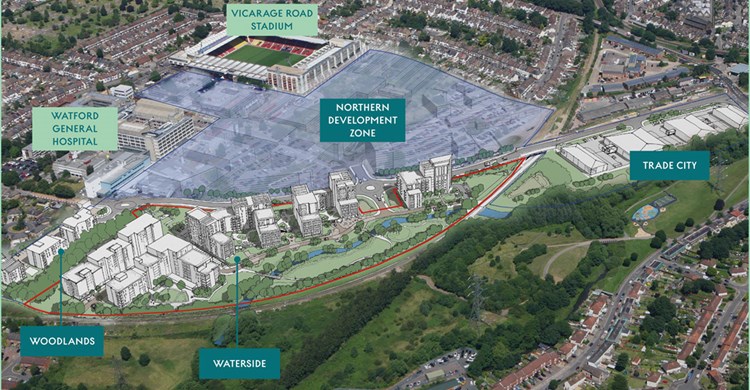 Construction on the first business zone, Trade City Watford, was completed in the third quarter of 2017, providing 70,000 sq. ft. of new business space and expected to create around 180 new jobs. Construction began on the first phase of residential development, known as 'Woodlands' in Autumn 2017, and the second phase, 'Waterside', in early 2018.