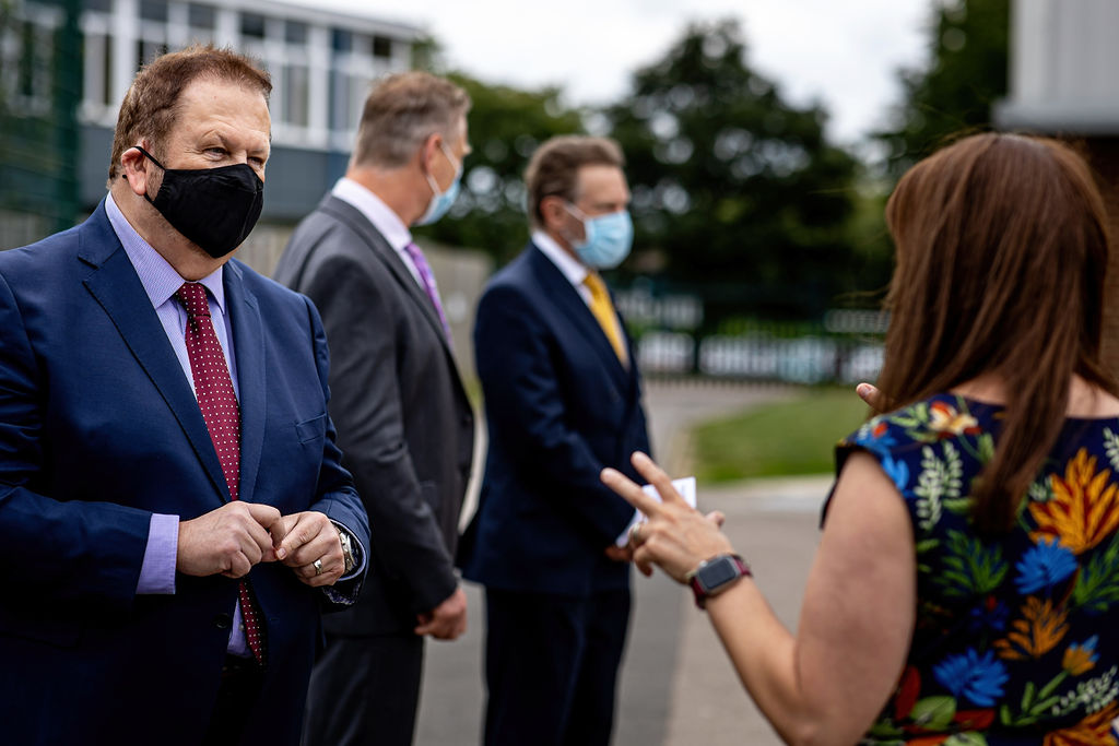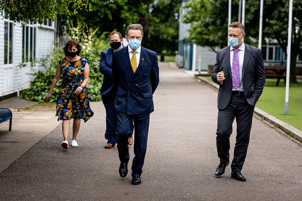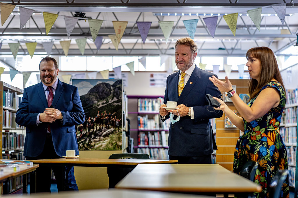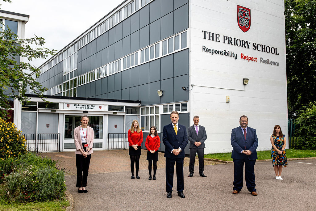The Lord-Lieutenant and Adrian Hawkins OBE visited The Priory School on 15 July, where they had the opportunity to meet with Headteacher Geraint Edwards, speak to students, and have a short tour of the school.