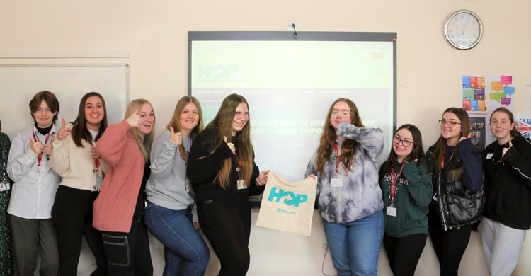From the winning team, students Amy and Grace said: “We worked as a team of nine to design our TikTok video. After researching the HOP website we gathered our ideas on a white board so we had a structure for producing our video. We collected props from around North Herts College to represent as many sectors as possible. The team were assigned roles based on skills such as video editing. We ensured we kept to the brief and ended up shortening our video to ensure we were within 15 seconds. We also know music is important and the song we used was catchy and relevant.